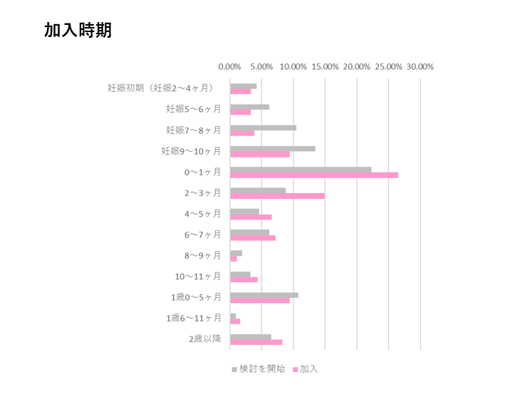 妊娠中に検討を開始、産後から生後2~3ヶ月までに加入