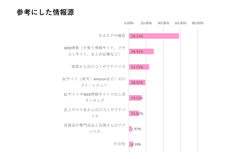 「カタログや雑誌」が最上位のほか、6割以上がWEB(情報サイトやEC)を参考