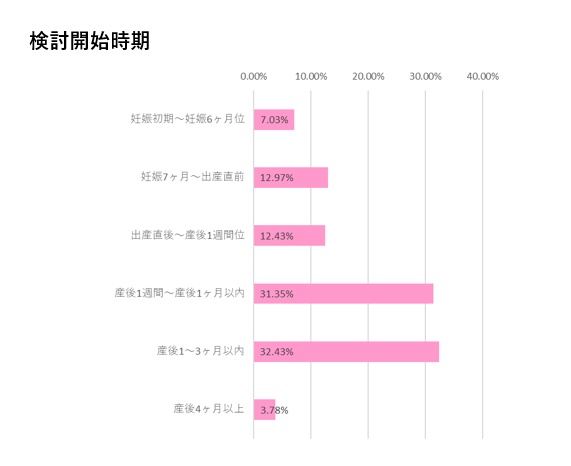 検討開始は妊娠中期から増え始め、産後13ヶ月がピーク
