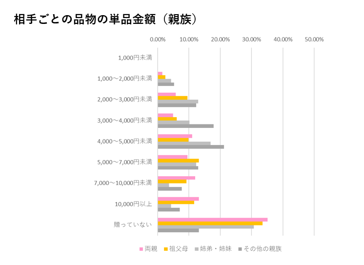両親・祖父母には贈らないケースが多いが、贈る場合は高額の傾向