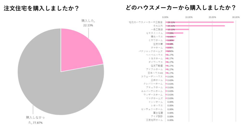 注文住宅を購入した方は約22%、うち約3割は地元のハウスメーカーから購入