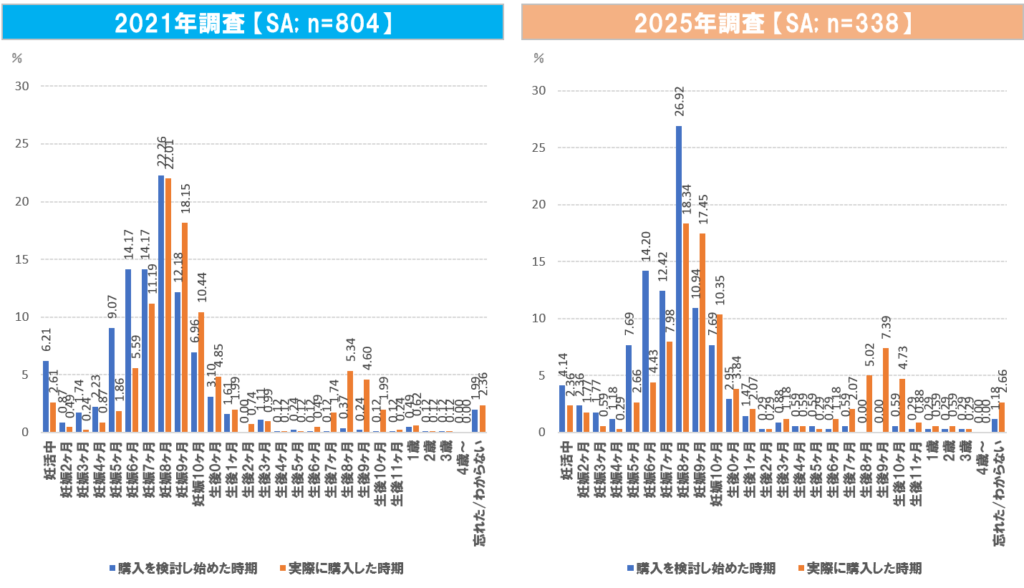 - チャイルドシート購入検討開始時期と購入時期の変化