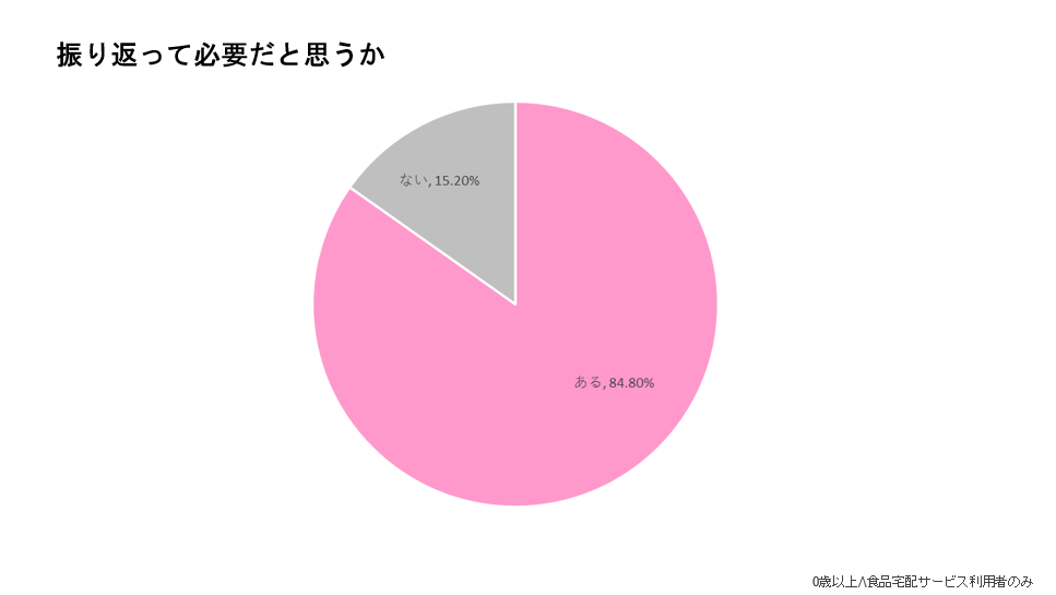 実際に利用したユーザーのうち、約85%が「食品宅配は必要なサービスだった」と回答している。これは育児生活において、食品宅配が“あってよかった”と実感されているサービスであることを裏付けるものである。