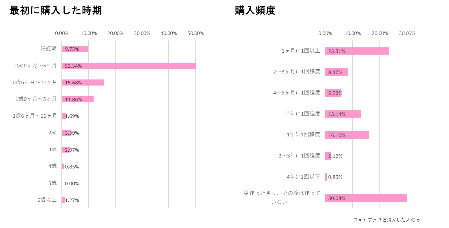 特に出産直後である0歳前半は、写真撮影枚数が非常に多くなる傾向にある時期である。そのため、イベントごとに「まとめたい」、成長過程を「整理したい」、そして「記念品にしたい」というニーズが強く発生しやすいと考えられる。