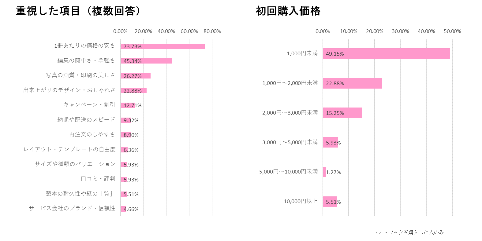 購入時に重視された項目では、「1冊あたりの価格の安さ」が最も高く、次いで「編集の簡単さ・手軽さ」が続いた。