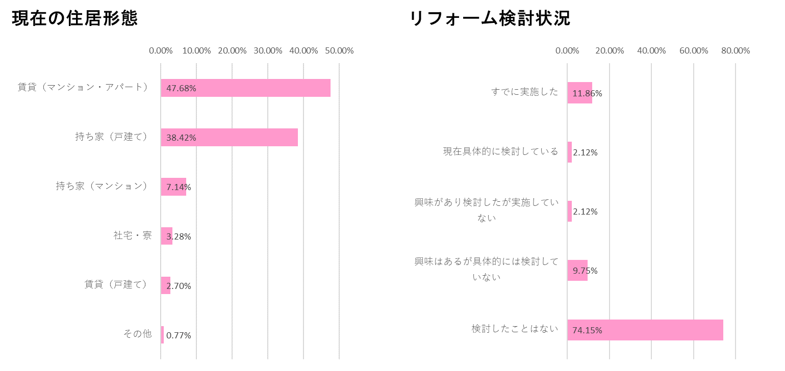 賃貸居住者が約半数。リフォーム検討経験は3割弱